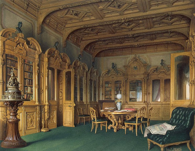 Luigi Ossipovich Premazzi (1814-1891)-'Mansion of Baron A. L. Stieglitz. The library-watercolour